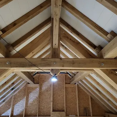 - Konstruktionsbalken draußen (sichtbare Arbeit)