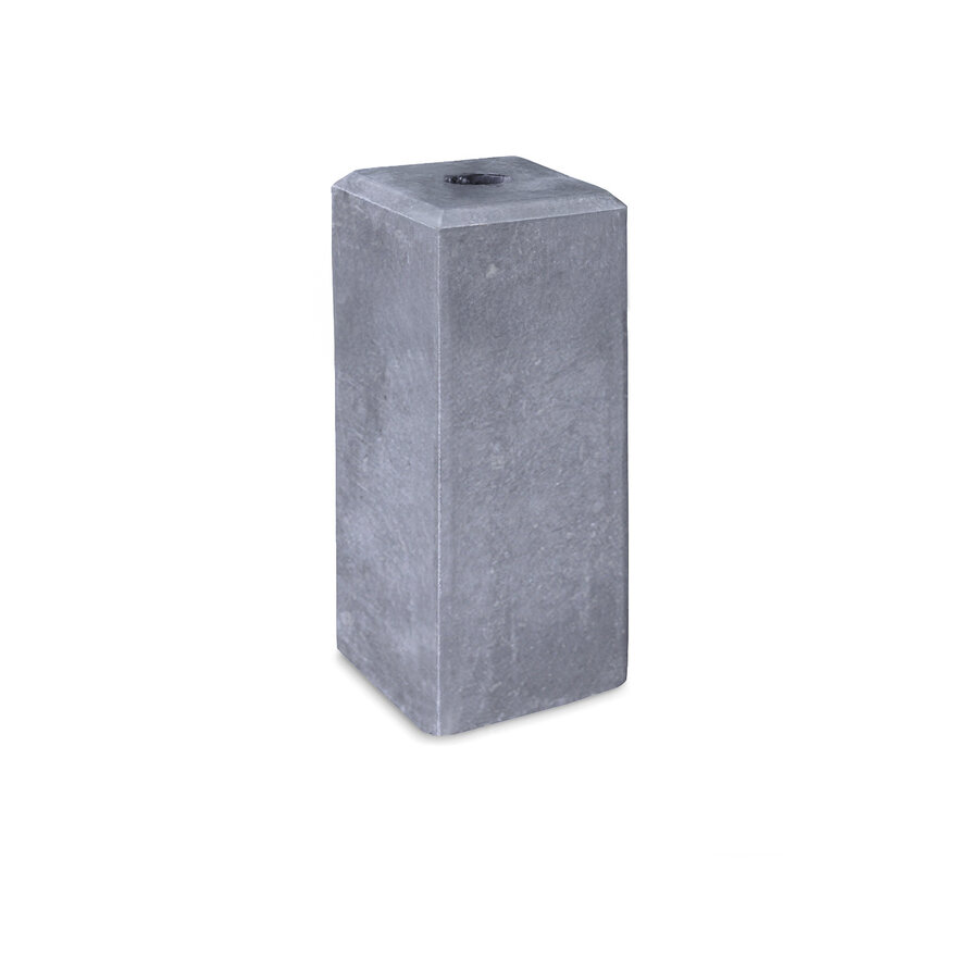 Blaustein-Sockel mit Loch - 16x16 cm - 35 cm hoch - Naturstein Pfostenträger mit Fase (1 cm). Dieser stilvollen Naturstein-Sockel aus stimmungsvollen blaustein hat die charakteristische blau-graue Farbe, die diese Natursteinart so beliebt macht. Der Pfostenträger hat eine Höhe von 35 cm und ist damit ein hohes Modell. Außerdem ist er mit einem durchgehenden Loch mit einem Durchmesser von 5 cm versehen. Die obere Kante des Naturstein-Sockels ist mit einer groben Fase von 1 cm versehen, die für eine gute Wasserableitung sorgt. Ein Sockel aus chinesischem Blaustein wirkt etwas stilvoller als Beton und verleiht Ihrer Konstruktion eine besonders hochwertige und elegante Ausstrahlung.