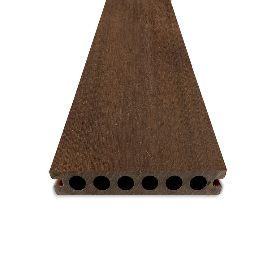 Eine WPC Terrassendielen (hohl) in Ipé Optik - 23x138 mm ist eine wunderschöne Terrassendielen aus dauerhaftem und farbechtem Holzverbundwerkstoff. Holzverbundstoff ist im Vergleich zu Holz formstabil, pflegeleicht und langlebig (+25 Jahre). Lesen Sie mehr
