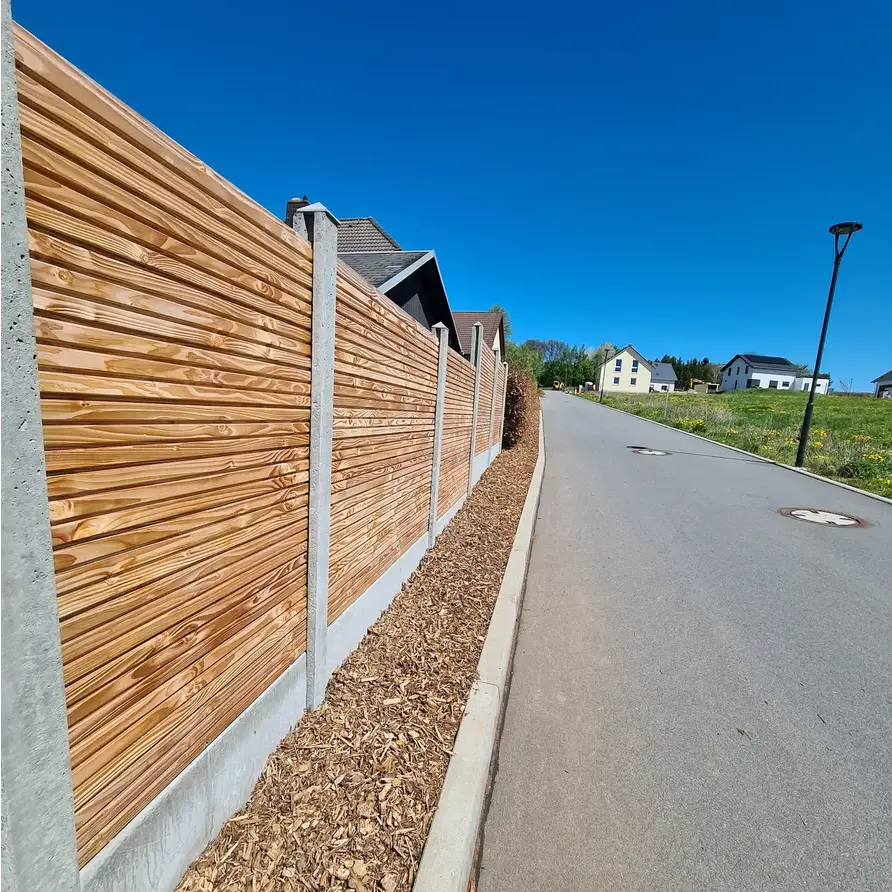 Es handelt sich dabei um ein Dreifach-Blockprofil beidseitig / doppelseitig, d. h. sowohl die Vorder- als auch die Rückseite haben die gleiche "Sichtseite". Diese ist ideal für einen Gartenzaun geeignet, bei dem beide Nachbarn die gleiche schöne Ansicht bekommen!
