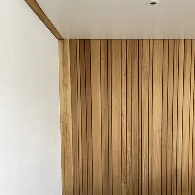 Doppel–Blockprofil (70/30) Abachi Thermoholz - 21x125 mm - Gehobelt - KD | ||||||
