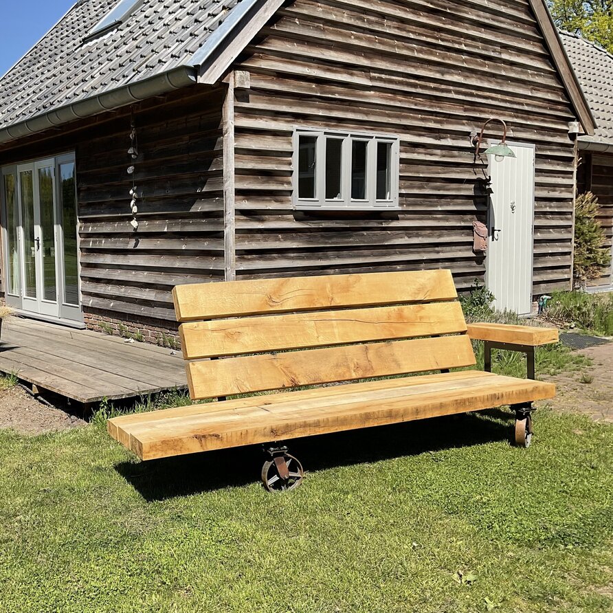 Dieser unbehandelte Eichenbohlen ist für den Außenbereich geeignet, hat eine raue Oberfläche (sägerau) und wird als Bauholz geliefert (das verarbeitet wird). Sägeraues AD rustikales Eichenholz enthält Äste, Risse, Unvollkommenheiten, möglicherweise geschlossenes Herz und unberührtes Splintholz (limitiert). Es kann auch Wasserflecken / Wasserringe und leichte Oxidflecken geben. Ein sägerauer Eichenbalken ist niemals rechtwinklig und formstabil. Sie sollten daher immer Größenabweichungen berücksichtigen (in Dicke und Breite bis zu 10% der Kopfgröße). Der Eichenbohlen wird standardmäßig (mit einer Kettensäge) gekürzt (mit 1 - 10 cm Überlänge) geliefert. Wenn Sie nach einem "formstabilen" Outdoor-Produkt mit einem "glatteren Aussehen" suchen, empfehlen wir gehobeltes Eichenholz.