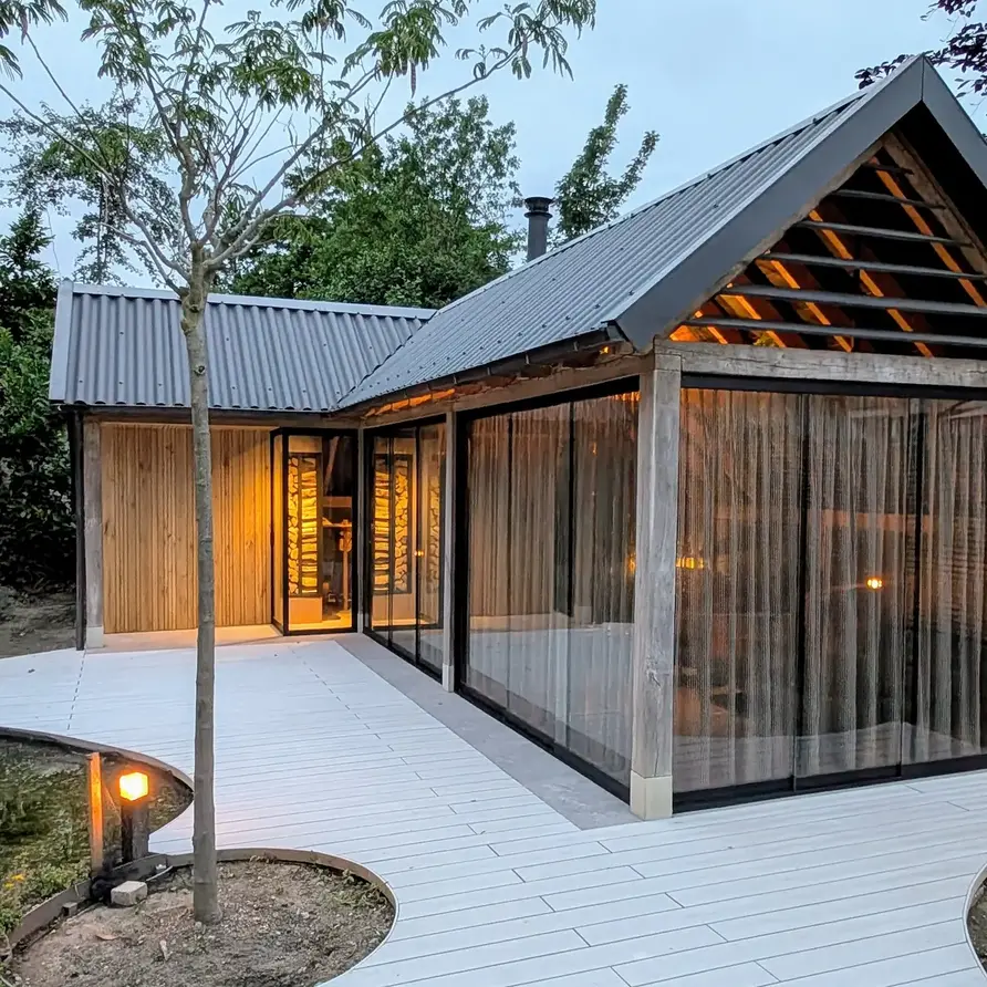 Dieser unbehandelte Eichenbohlen ist für den Außenbereich geeignet, hat eine raue Oberfläche (sägerau) und wird als Bauholz geliefert (das verarbeitet wird). Sägeraues AD rustikales Eichenholz enthält Äste, Risse, Unvollkommenheiten, möglicherweise geschlossenes Herz und unberührtes Splintholz (limitiert). Es kann auch Wasserflecken / Wasserringe und leichte Oxidflecken geben. Ein sägerauer Eichenbalken ist niemals rechtwinklig und formstabil. Sie sollten daher immer Größenabweichungen berücksichtigen (in Dicke und Breite bis zu 10% der Kopfgröße). Der Eichenbohlen wird standardmäßig (mit einer Kettensäge) gekürzt (mit 1 - 10 cm Überlänge) geliefert. Wenn Sie nach einem "formstabilen" Outdoor-Produkt mit einem "glatteren Aussehen" suchen, empfehlen wir gehobeltes Eichenholz.