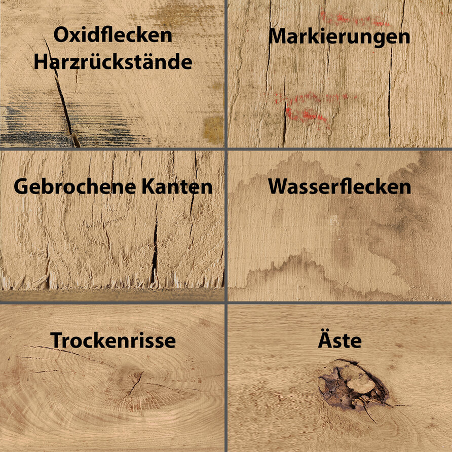 Unser sägeraues Eichenholz wird "frisch" auf die exakten Abmessungen zugeschnitten. Die angegebenen Maße sind die Maximalabmessungen. Die Abmessungen der Eiche können bis zu 8 % kleiner sein, was hauptsächlich auf das Trocknen des Holzes (Schwinden) zurückzuführen ist. Bitte berücksichtigen Sie das bei der Berechnung der Bedarfsmengen.