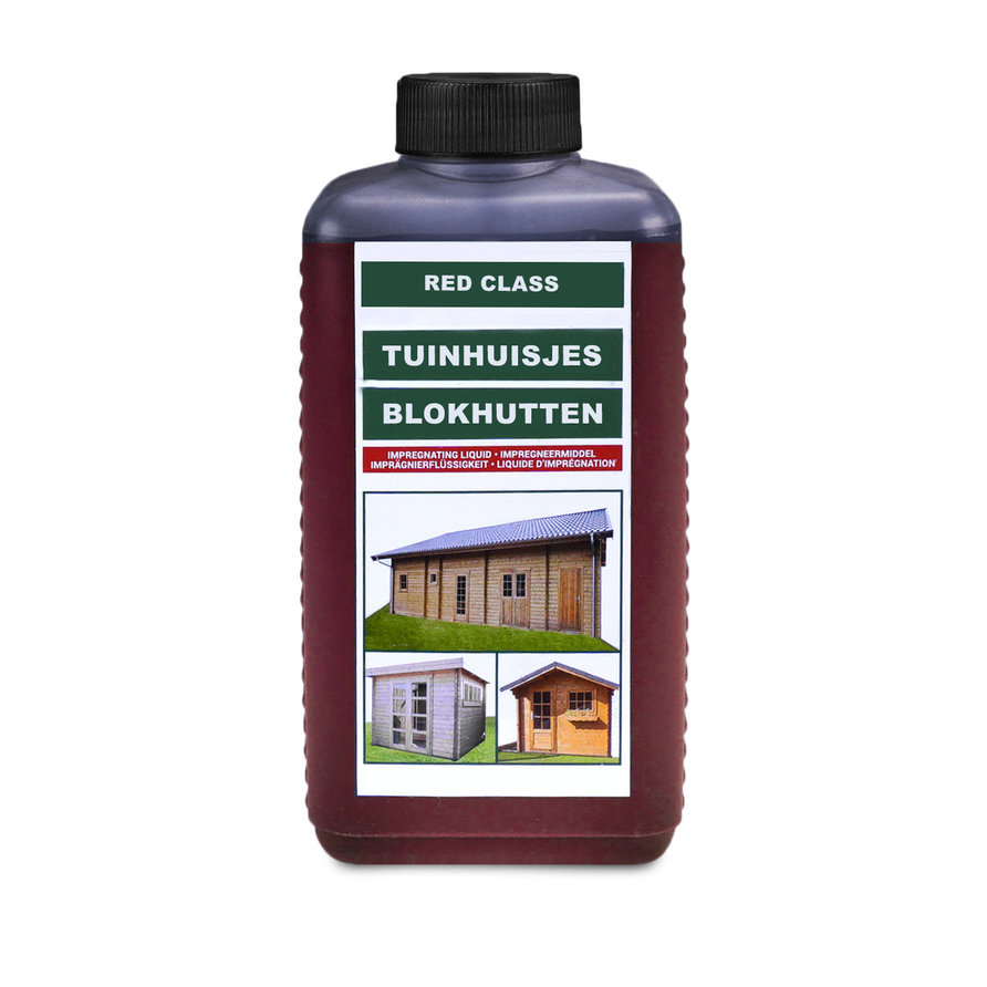 Imprägniermittel Red Class Holz - lösungsmittelbasiert - Anti-Pilzmittel (Propiconazol) - 0,75 und 2,5 l - Verbrauch: 12-14 m¬≤/l (abhängig vom Untergrund) - transparent (nicht farblos). Dieses Imprägniermittel ist speziell dafür bestimmt, um die Farbe von Gartenholz wiederherzustellen und einen langfristigen Schutz gegen Feuchtigkeit und Alterung bzw. Verfärbung zu bieten. Dieses Holz-Imprägniermittel ist transparent, verleiht dem Holz aber einen orange-rosa Schimmer, der die Holzmaserungen hervorhebt. Dieses Imprägnierungsmittel wird hauptsächlich verwendet, um Nadelholz in der Farbe von Lärchen- / Douglasienholz mit diesem unverwechselbaren rosa Schimmer zu imprägnieren. Es ist aber natürlich auch geeignet, um ergrautes Lärchen- und Douglasienholz wieder aufzufrischen. Das Imprägnierungsmittel dringt tief in das Holz ein und wirkt feuchtigkeitsregulierend und pilztötend, wodurch das Holz gut geschützt wird und viel länger hält! Außerdem hat dieses Imprägniermittel einen rosa Farbton. Das ist ideal, um dem vergrauten Holz sein warmes, natürliches Aussehen zurückzugeben.