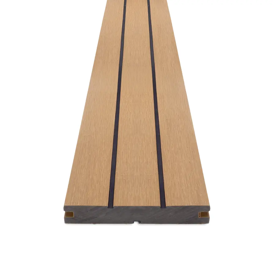 Eine WPC Terrassendielen mit Nutprofil in Zeder Optik - 22x146 mm ist eine wunderschöne Terrassendielen aus dauerhaftem und farbechtem Holzverbundwerkstoff. Holzverbundstoff ist im Vergleich zu Holz formstabil, pflegeleicht und langlebig (+25 Jahre). Lesen Sie mehr